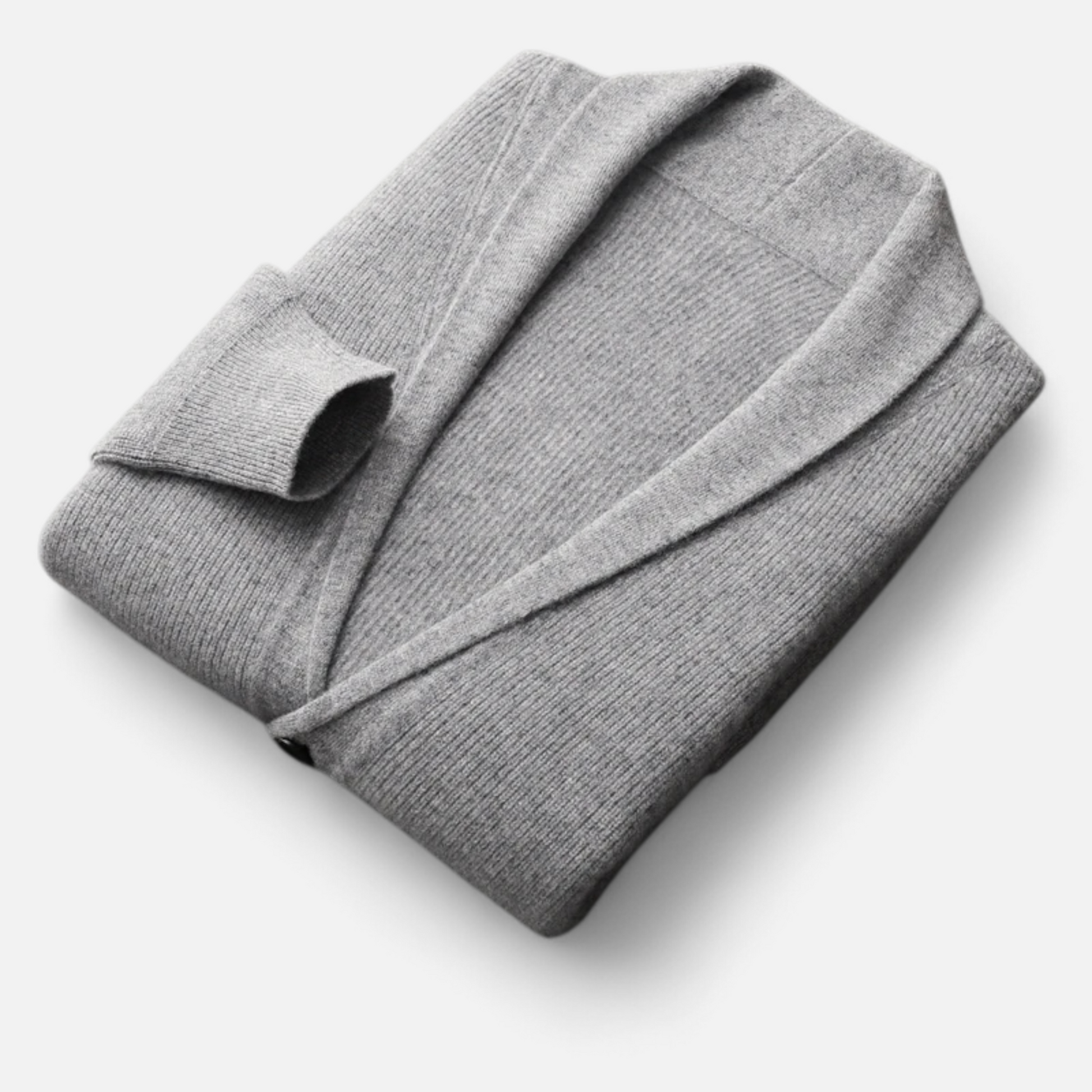 Step into timeless sophistication with this 100% merino wool cardigan, designed with a distinguished suit-style collar. Thick-knit and luxuriously soft, it delivers both warmth and elegance, making it a versatile layer for business and leisure.